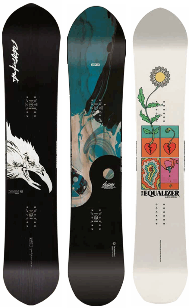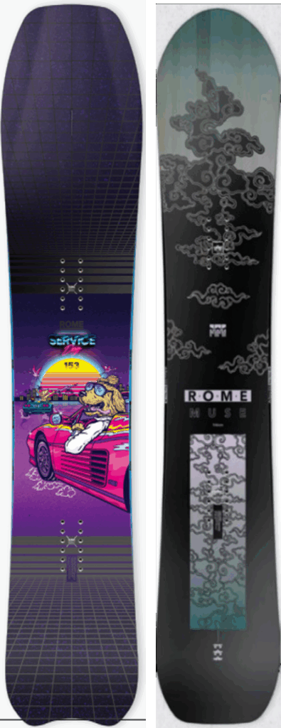 New model & former seasons model snowboard.